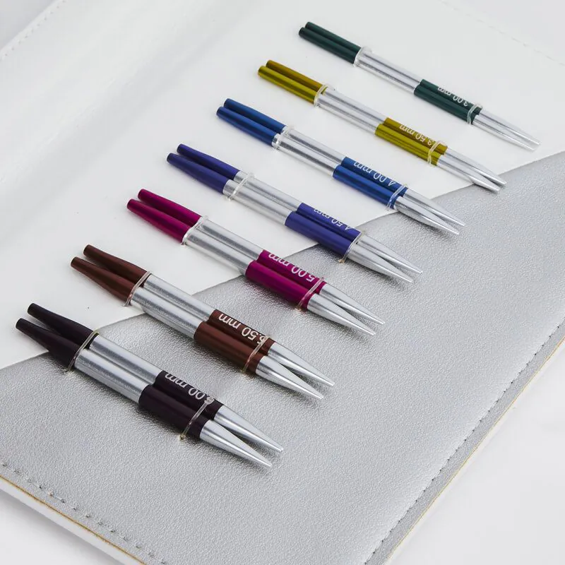 Fabricadas en metal liviano y resistente, estas puntas aseguran un deslizamiento fluido del hilado. Su taperado uniforme garantiza una inserción precisa en cada punto, ofreciendo un control excepcional en proyectos de circunferencias reducidas.