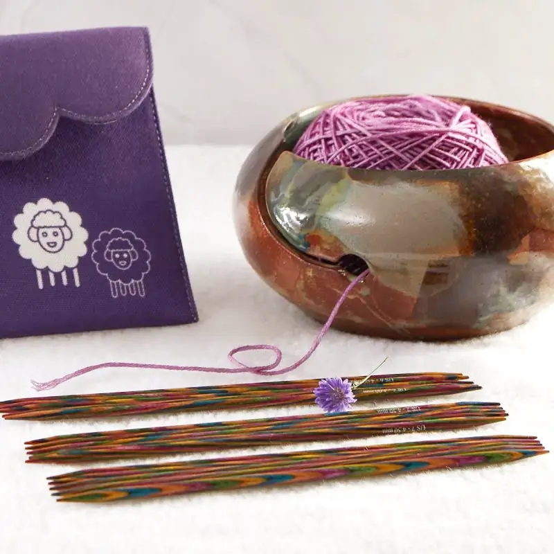 Cada uno de los juegos incluidos en los sets de Agujas Doble Punta KnitPro Symfonie cuenta con cinco agujas por tamaño, proporcionando la configuración necesaria para cerrar tus circunferencias con total seguridad y prolijidad. La experiencia se completa con un diseño de almacenamiento único: un estuche textil color púrpura con borde festoneado y motivos de ovejas. Este estuche no solo protege las puntas de madera del roce y la humedad, sino que mantiene cada juego perfectamente clasificado y listo para ser transportado con elegancia. Con los sets de doble punta Symfonie, la tradición del tejido en redondo se transforma en una experiencia de color, confort y precisión técnica superior para tu taller.