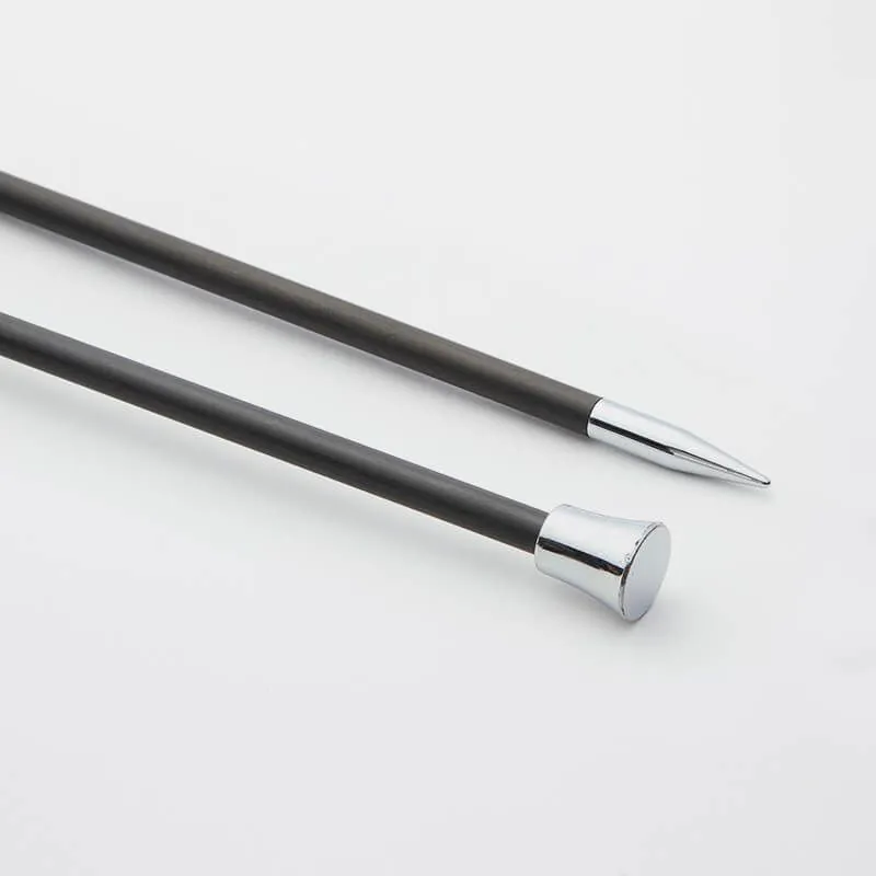 Las Agujas Rectas KnitPro Karbonz cubren un espectro que va desde los calibres más finos hasta los intermedios, donde la resistencia del material es crítica: