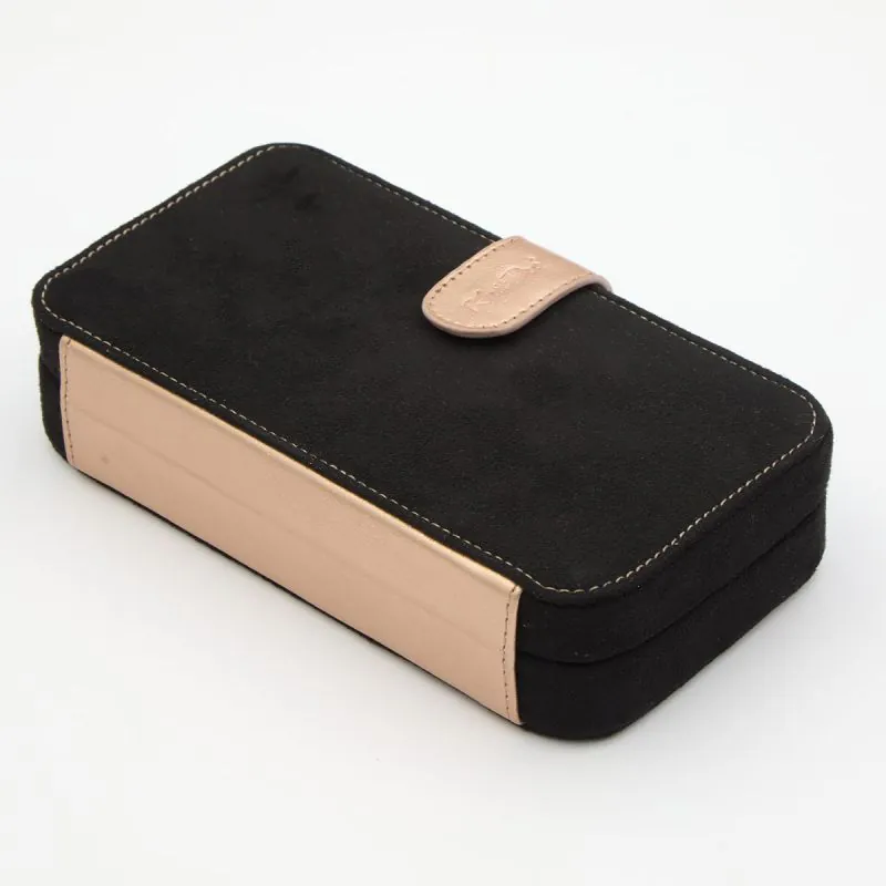 Estuche de Diseño: Gamuza sintética color negro Coal, rígido y funcional para proteger tu inversión.